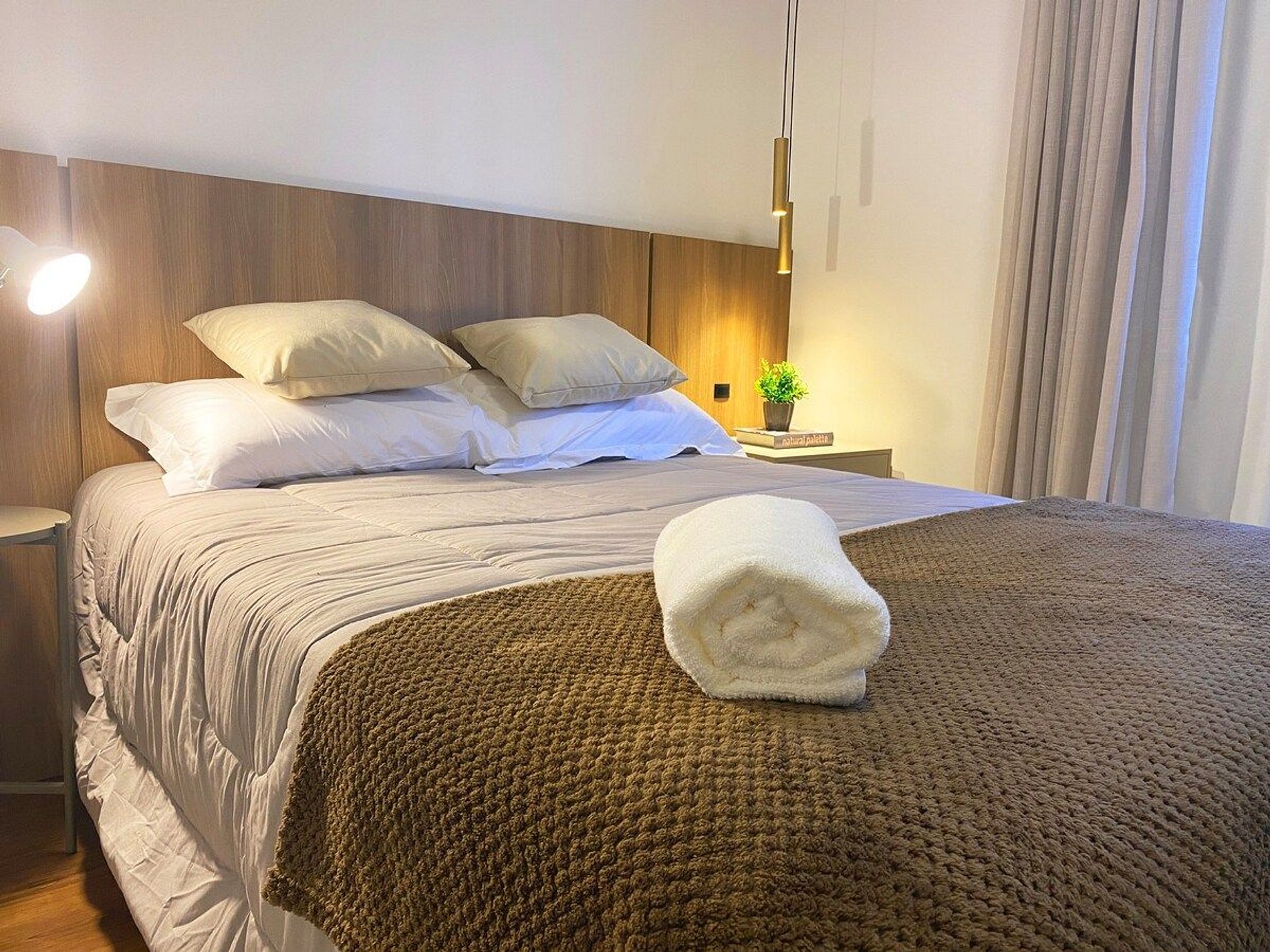 É fornecido um jogo de cama completo conforme o número de hóspedes, para a estadia.